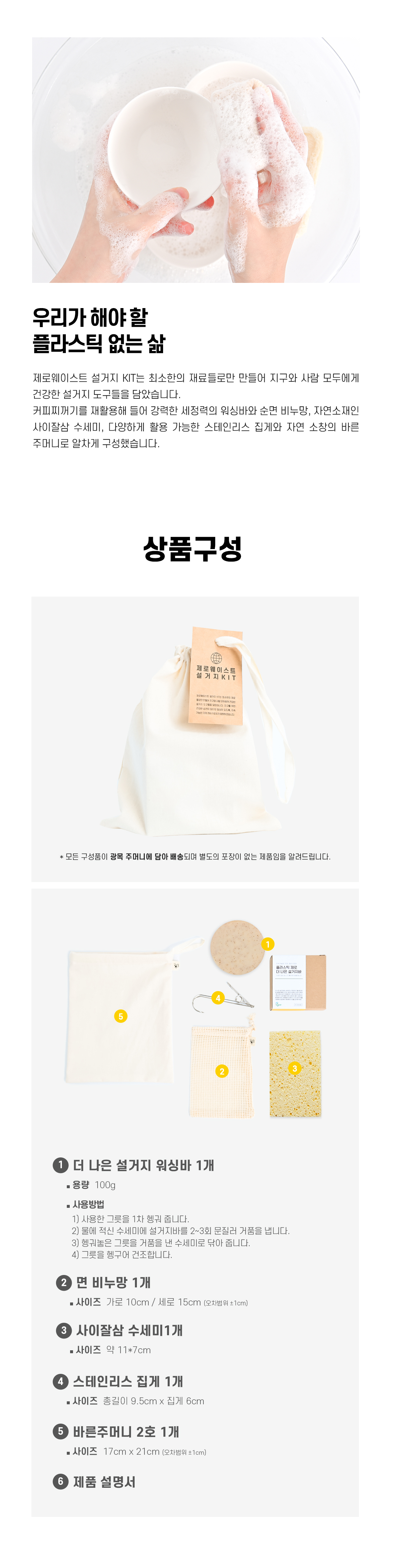 | 제조국 또는 원산지 | 광목/설거지바(국내),고리수세미,면비누망,스테인리스집게(중국) |