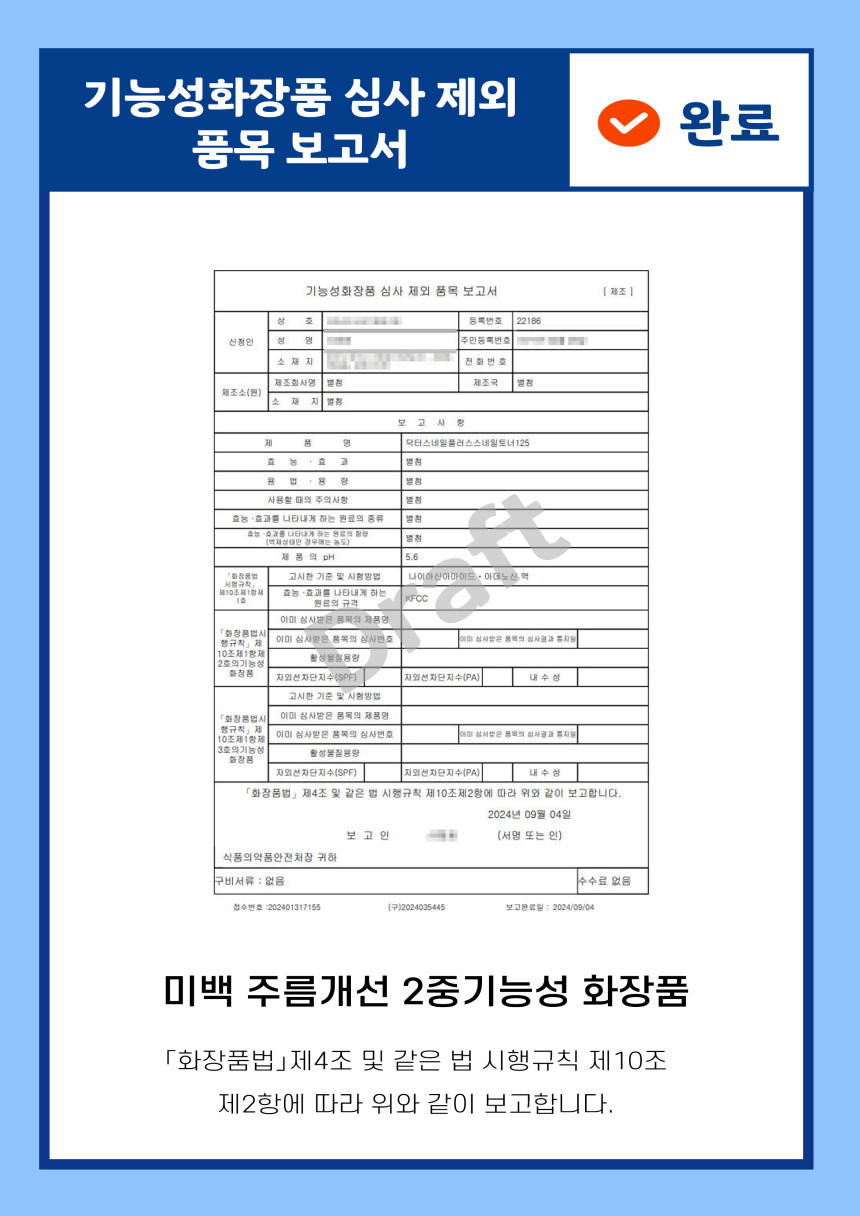 | 식품의약품안전청 심사 필 유무 | 미백, 주름개선 |