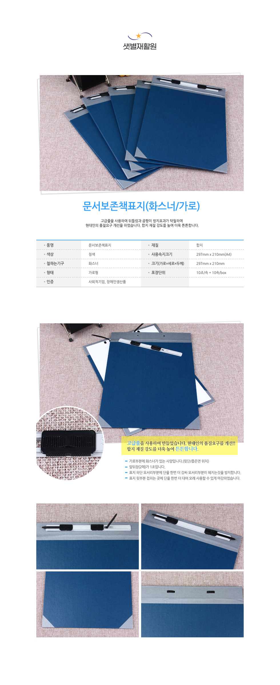 | 품명 및 모델명 | A4문서보존책표지_화스너(청색/가로) |