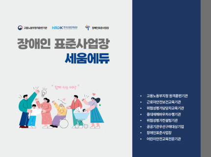 세움에듀는 온오프라인 교육기관 중 최초로 장애인표준사업장으로 승인받았습니다. 그리고 직업능력개발훈련 및 근로자안전보건교육 같은 법정교육과 공공기관 또는 일반기업을 대상으로 하는 맞춤형 교육시스템을 개발하여 납품하고 있습니다. 자사는 2023년 우수한 기술력 및 운영능력을 바탕으로 고용노동부로부터 우수훈련기관 인증을 받았으며, 동년 산업안전보건공단 평가에서도 실적 등 인정받아 우수훈련기관으로 선정되었습니다.