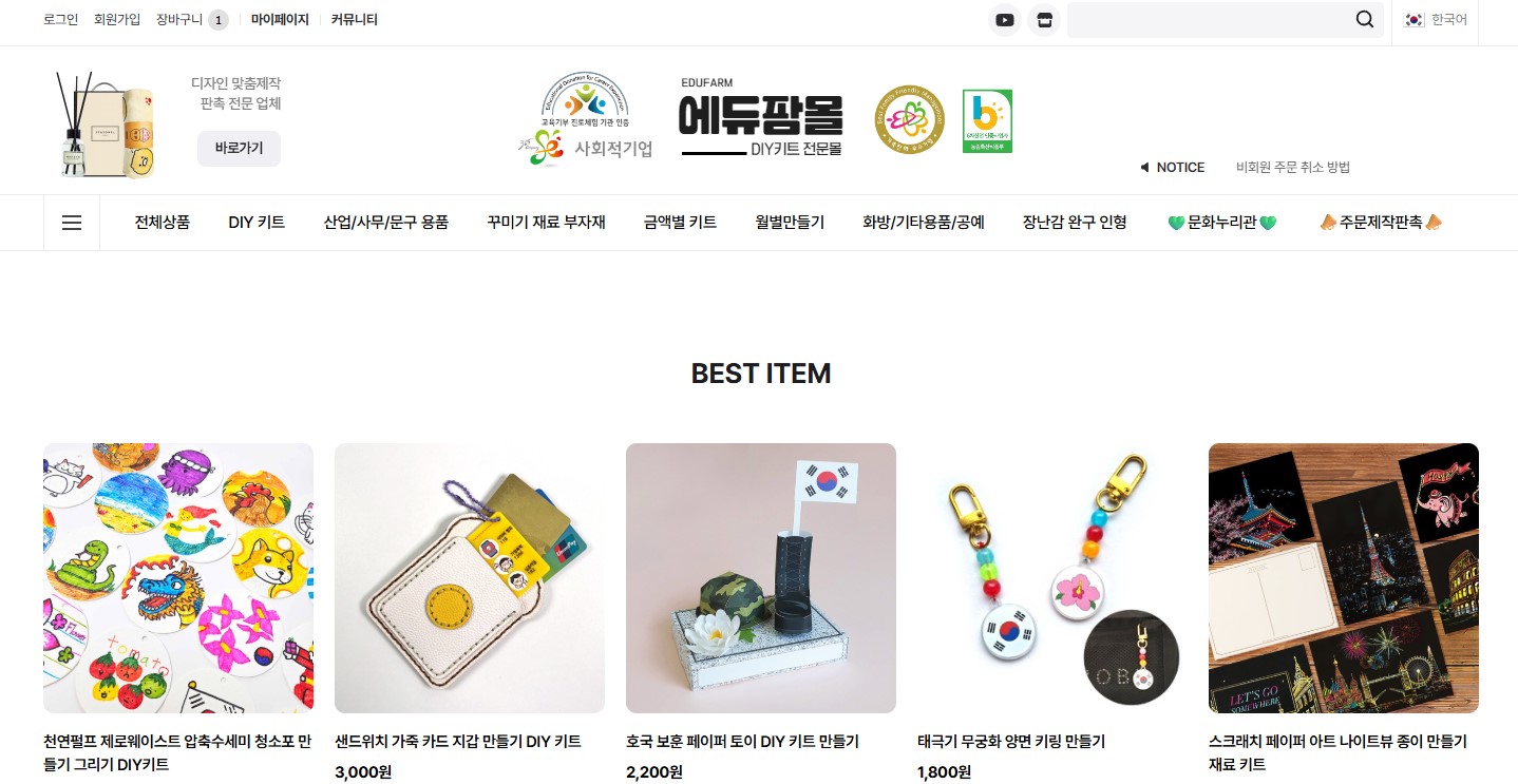 에듀팜몰은 사회적 경제적 취약계층에게 문화 예술 감수성 회복을 위한 DIY키트를 무상보급하고 있습니다.