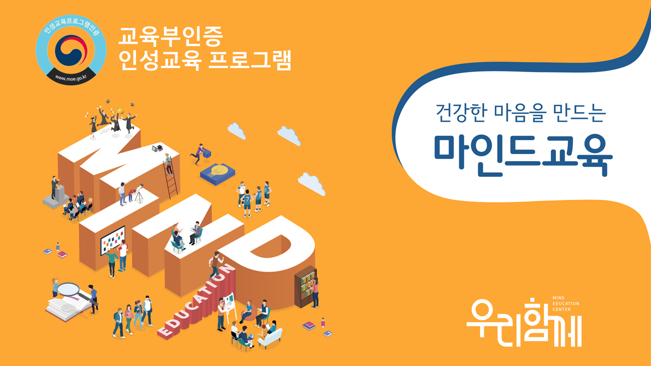 우리함께는 교육부 산하 비영리 인성교육 전문기관입니다. 우리함께는 교육부 인성교육종합계획과 Mind Education 이론을 바탕으로, 학생들이 삶에 적용하고, 실천할 수 있는 체계적인 인성교육을 제공합니다.